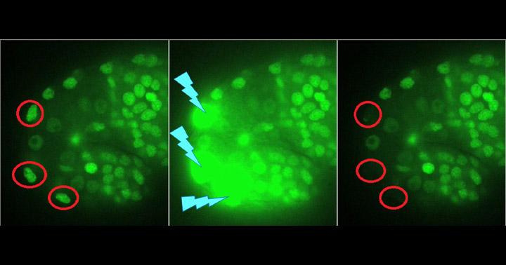 Dragonfly 的近红外(NIR)激光器是胚胎发育活体成像的绝佳选择,搭配 EMCCD 相机可在极低光照强度下研究不对称细胞分裂机制。
