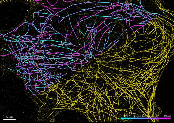 The growing availability of super resolution light microscopy allows researchers to observe cell components in greater details. Some intracellular structures, such as microtubules, endoplasmic reticulum or actin filaments can be easily detected as filaments thanks to the new Imaris 10 Filament Tracer algorithm for the looped and entangled structures. The combination of the intensity-based autopath algorithm with machine learning classifiers enables fast and precise detection of those structures. Modelling as filaments unlocks several measurements unavailable for other Imaris models, such as segment length and total length, straightness, mean diameter or orientation.
